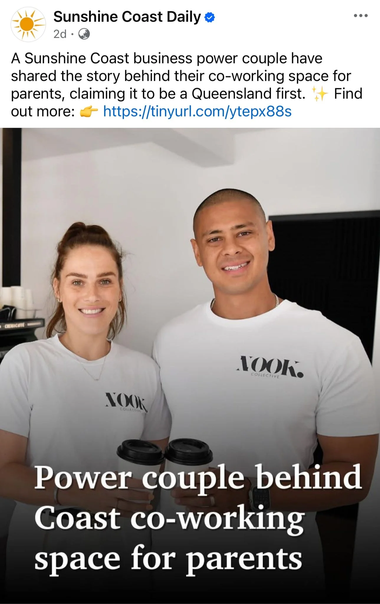 We are beyond excited to share that Nook Collective was recently featured in Sunshine Coast Daily and Courier Mail under the headline: "Power couple behind Coast co-working space for parents."